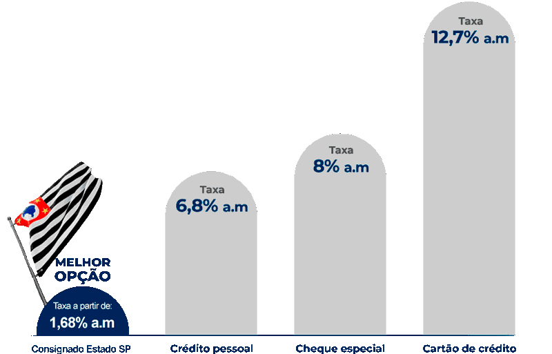 A taxa de juros do empréstimo consignado para servidor público Estado SP é a partir de 1,68% a.m.