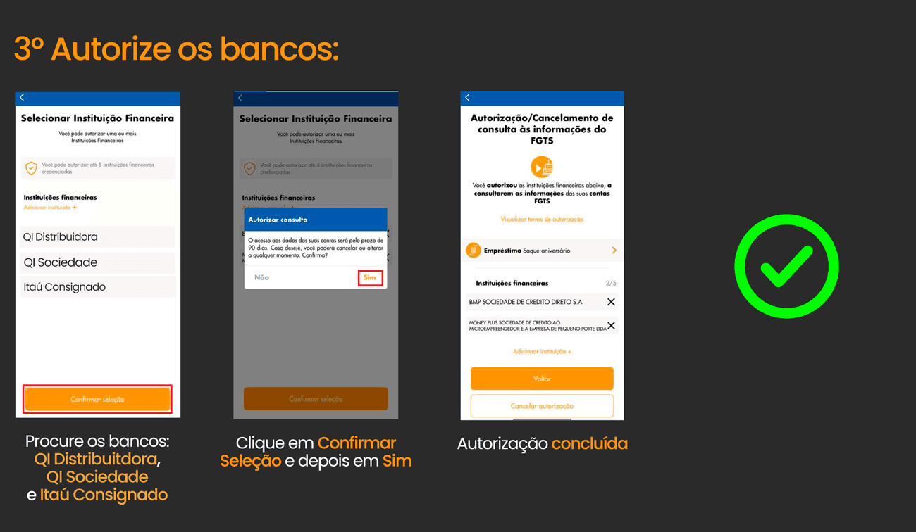 Após a confecção do contrato no sistema do Banco, o Banco envia para o celular do cliente um link seguro para formalização digital, onde o cliente ao acessar conferirá o contrato e fará o aceite eletrônico, selfie do rosto, e foto do documento de identidade. Simples, prático, 100% online e seguro.