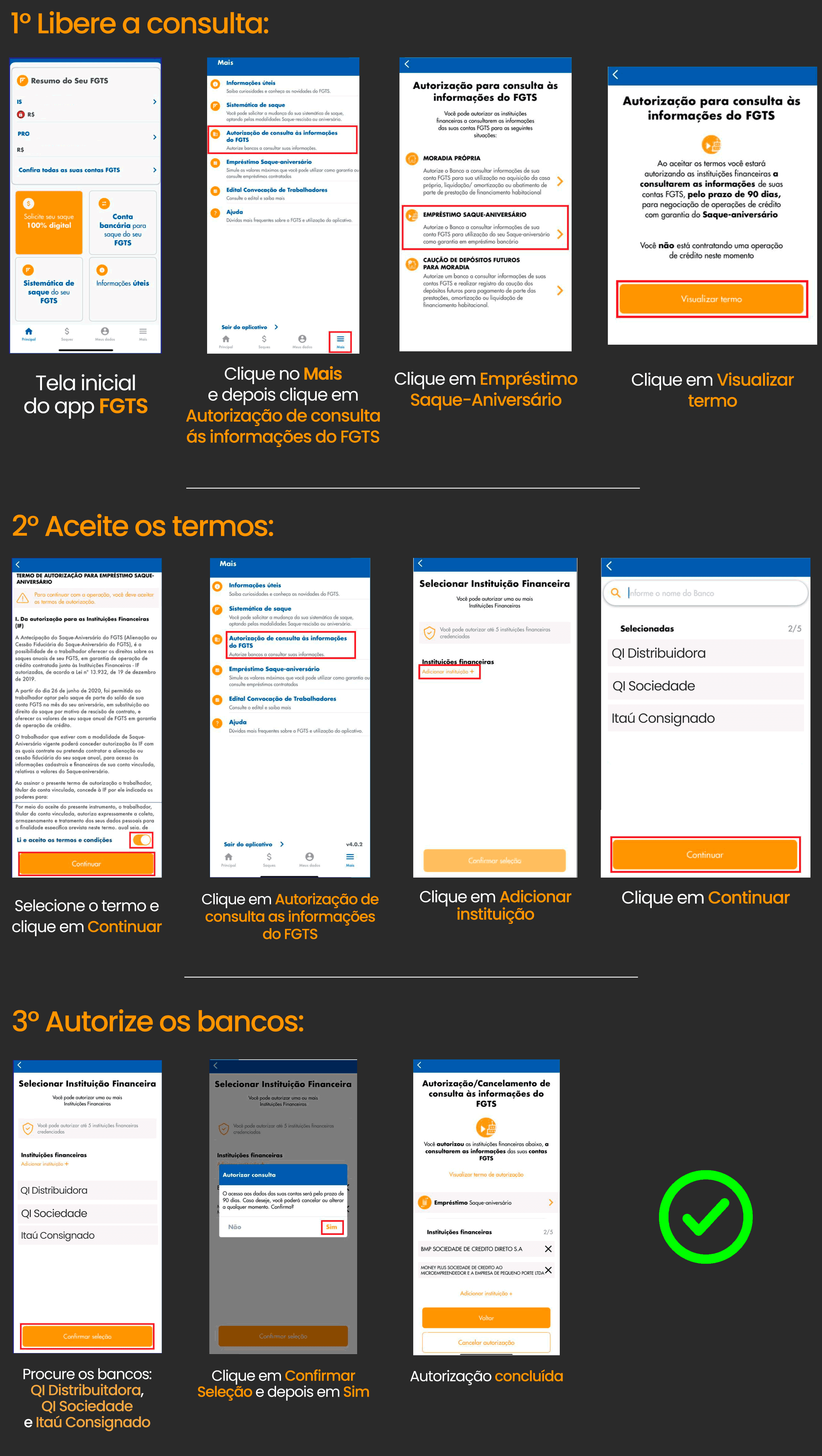 Com a publicação da Lei 13.932 de 2019, o governo federal alterou as regras relativas ao saque do FGTS, incluindo a sistemática do saque aniversário como nova opção oferecida ao trabalhador, em alternativa à sistemática de saque por rescisão do contrato de trabalho, que permitirá a retirada de parte do saldo da conta vinculada do FGTS, anualmente, no mês do seu aniversário. É possível simular o valor disponível para saque aniversário no aplicativo FGTS.